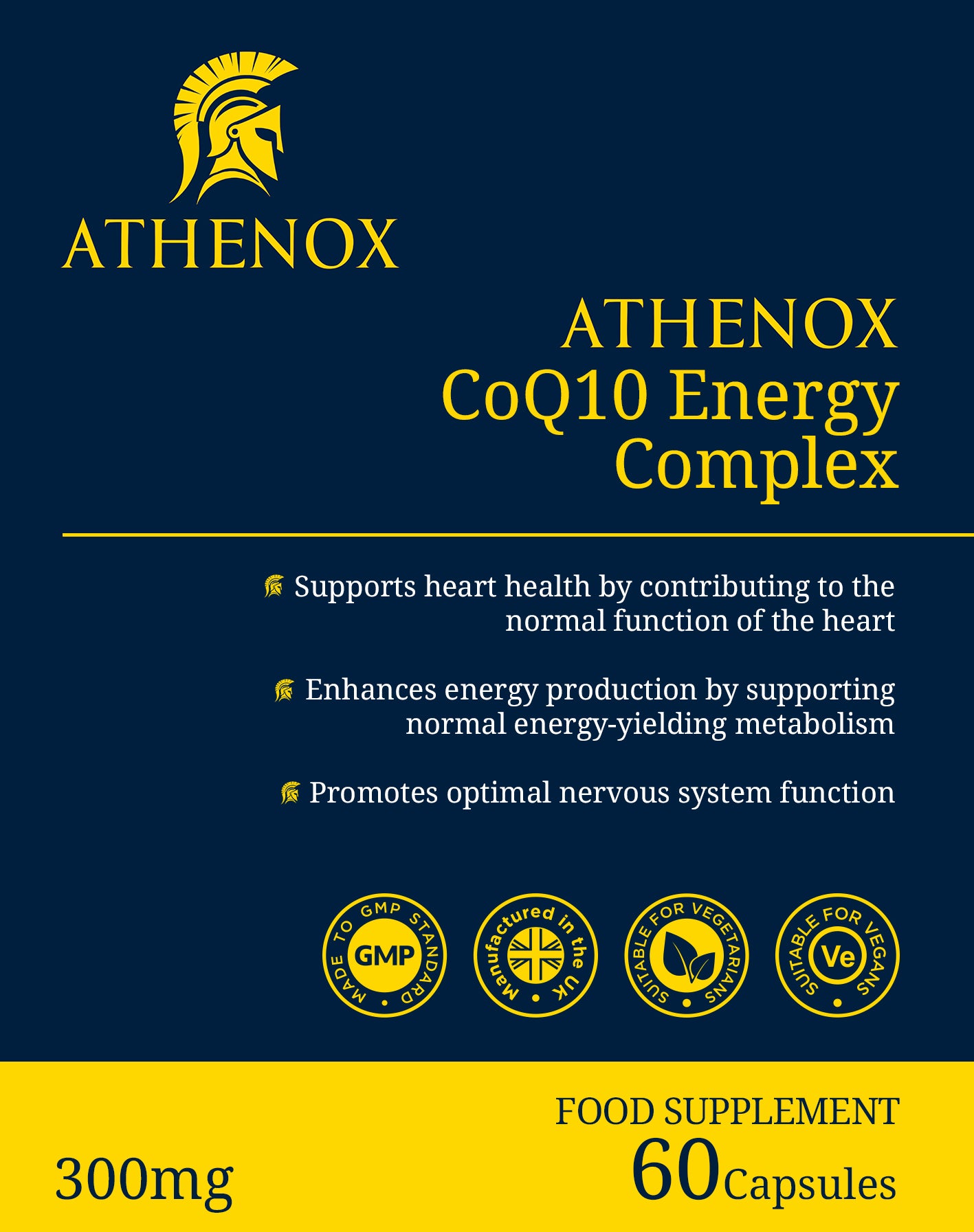 Elevate your energy and heart health with ATHENOX CoQ10 Energy Complex. This premium supplement features 300mg of Coenzyme Q10 (CoQ10) per capsule, a powerful antioxidant known for supporting cellular energy production and cardiovascular health. CoQ10 is essential for converting food into energy, making it a vital component for maintaining optimal health and vitality. Perfect for those looking to enhance their energy levels, support heart health, and combat oxidative stress.