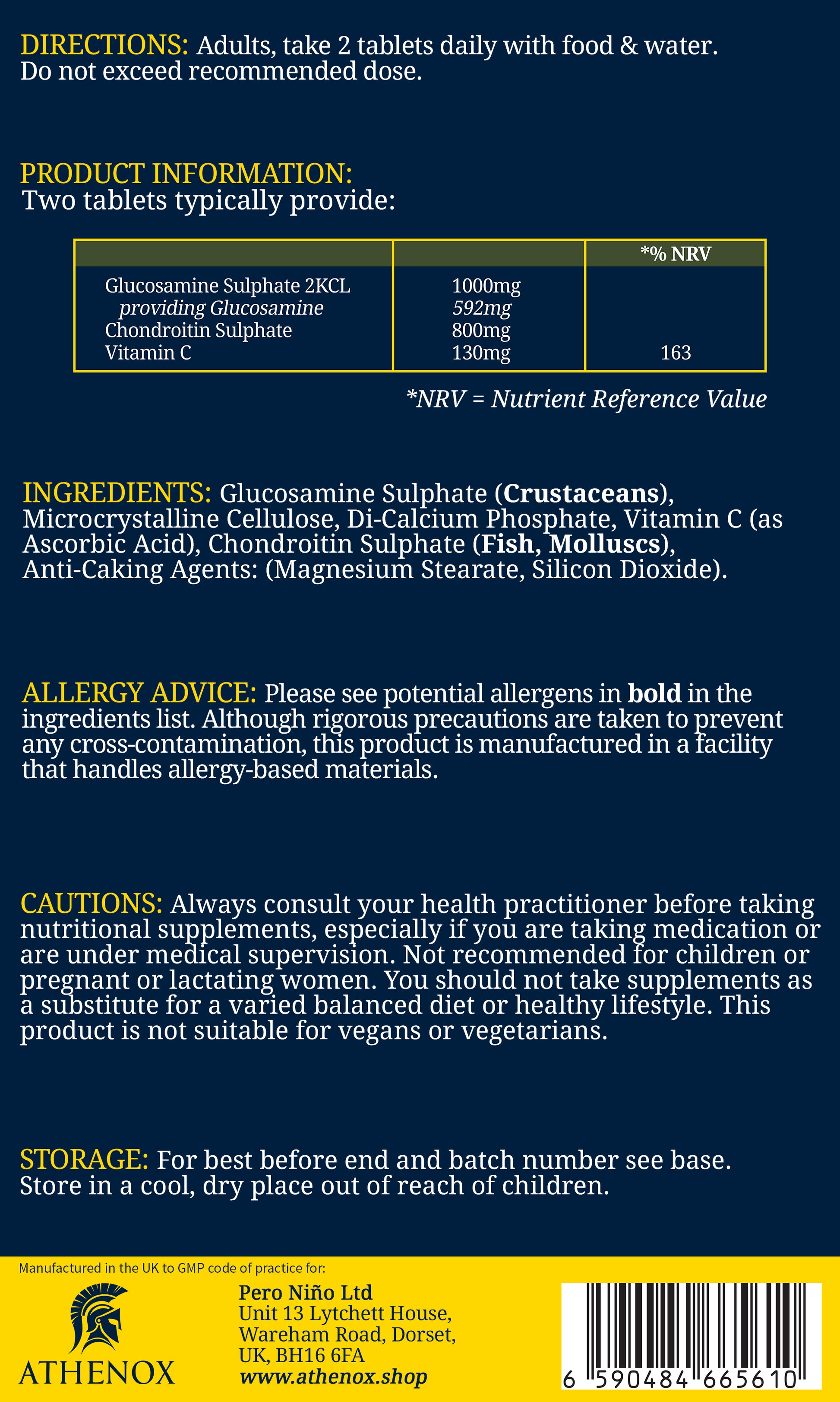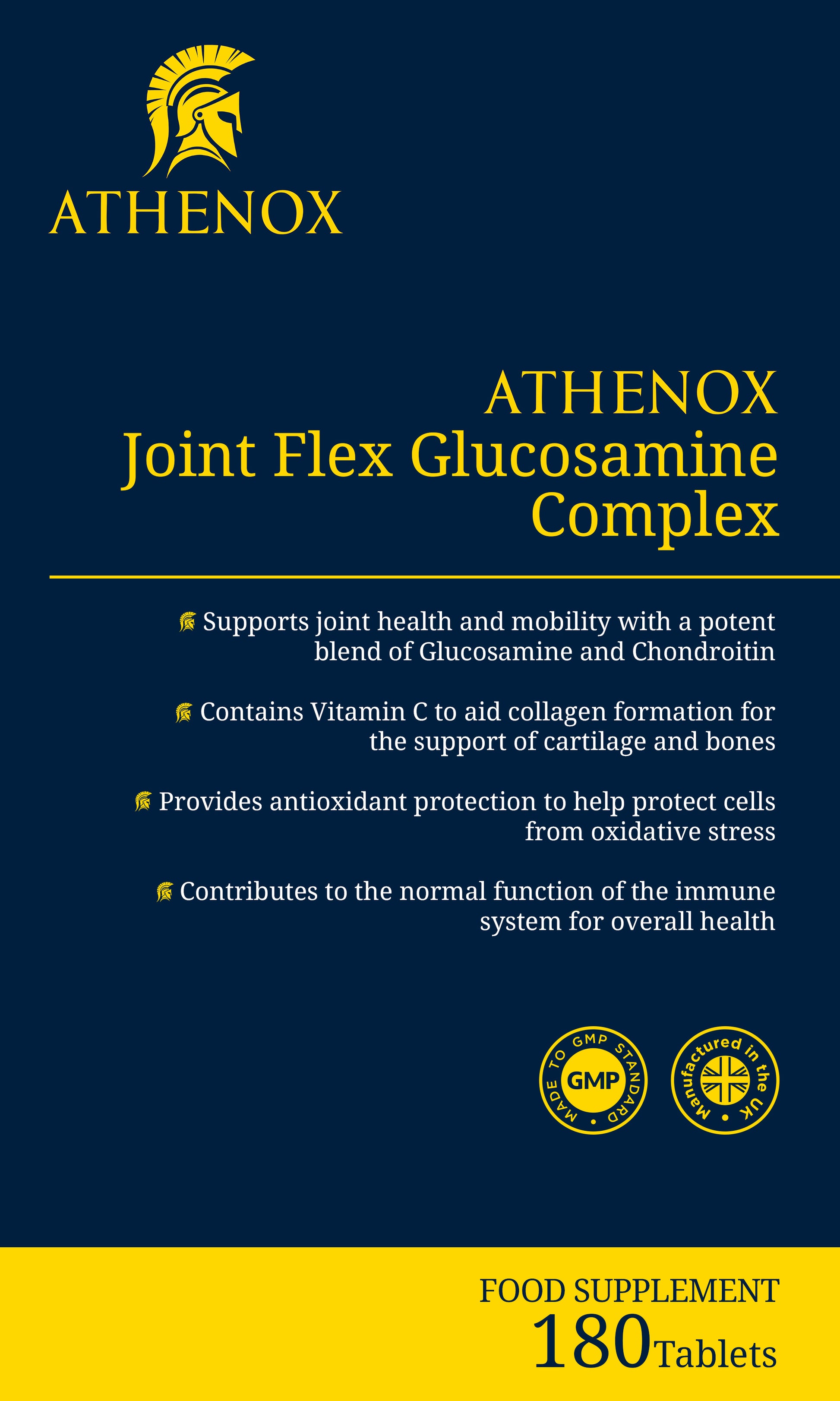 Experience the ultimate in joint support with ATHENOX Joint Flex Glucosamine Complex. This premium supplement combines the powerful benefits of Glucosamine and Chondroitin with added Vitamin C to promote healthy cartilage, reduce joint discomfort, and enhance mobility. Perfect for those seeking to maintain an active lifestyle, our formula helps support normal cartilage function and joint flexibility, ensuring you stay at your best every day.